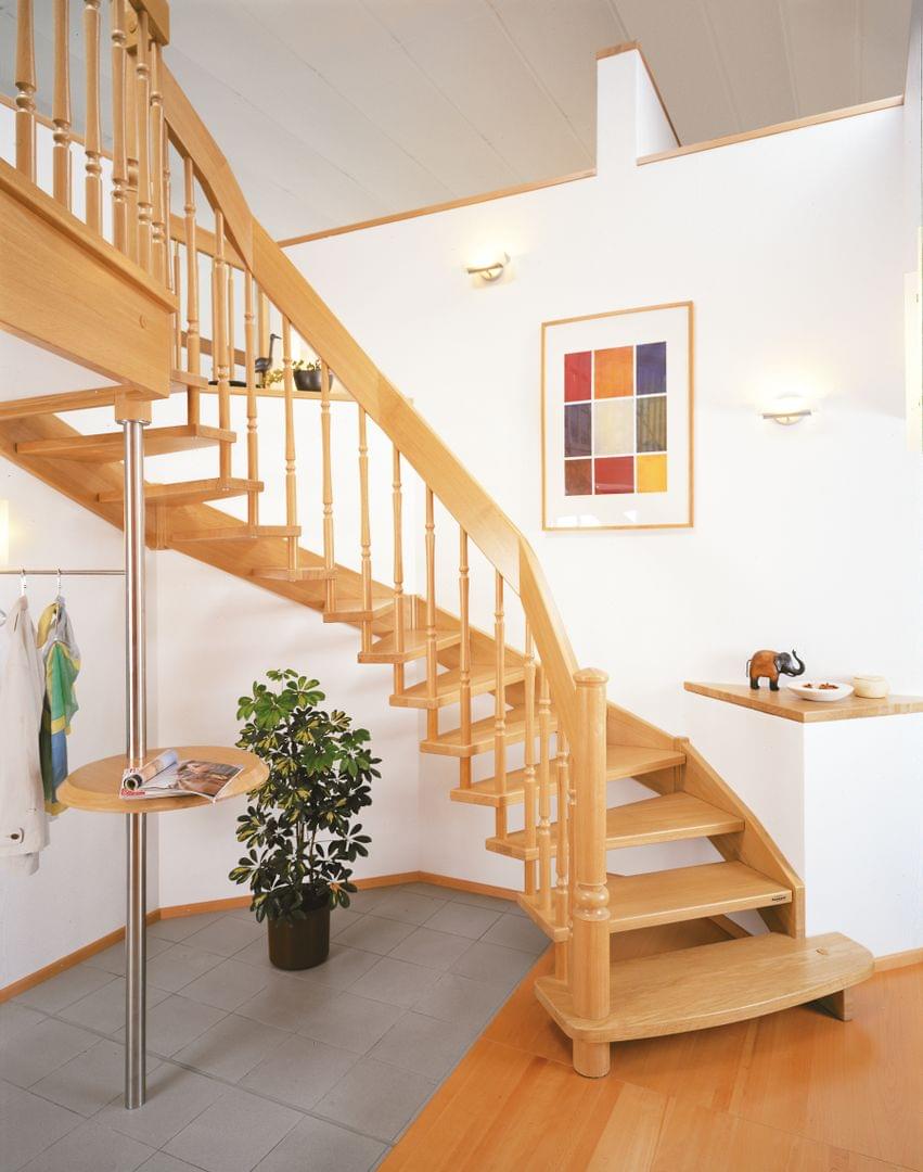 Holztreppe Systemtreppe mit gedrechselten Stäben im Holzgeländer Treppenmeister 501b