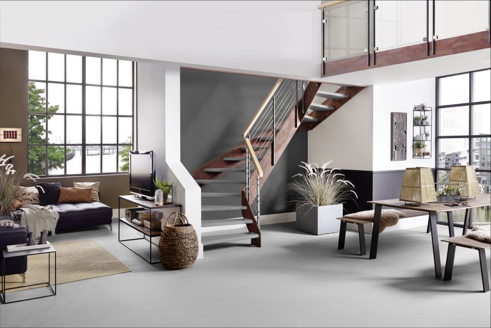 Zweifarbige Holzwangentreppe Treppenmeister 5445c